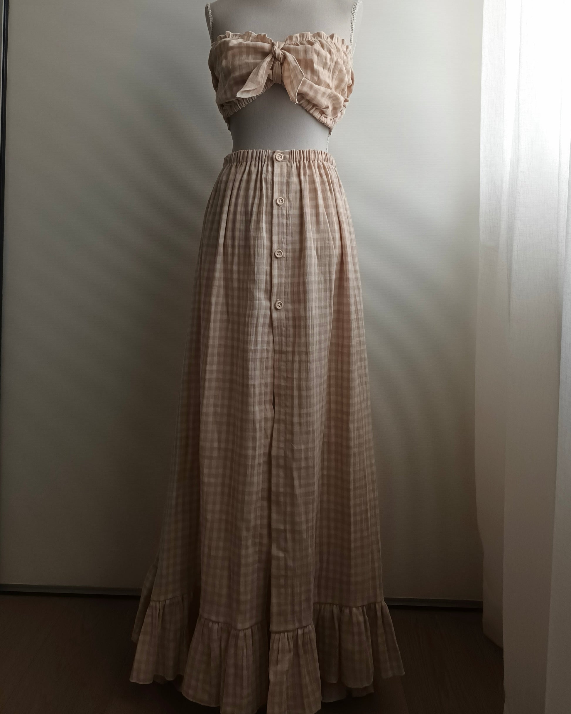 Gonna con bottoncini in legno e balza sul fondo