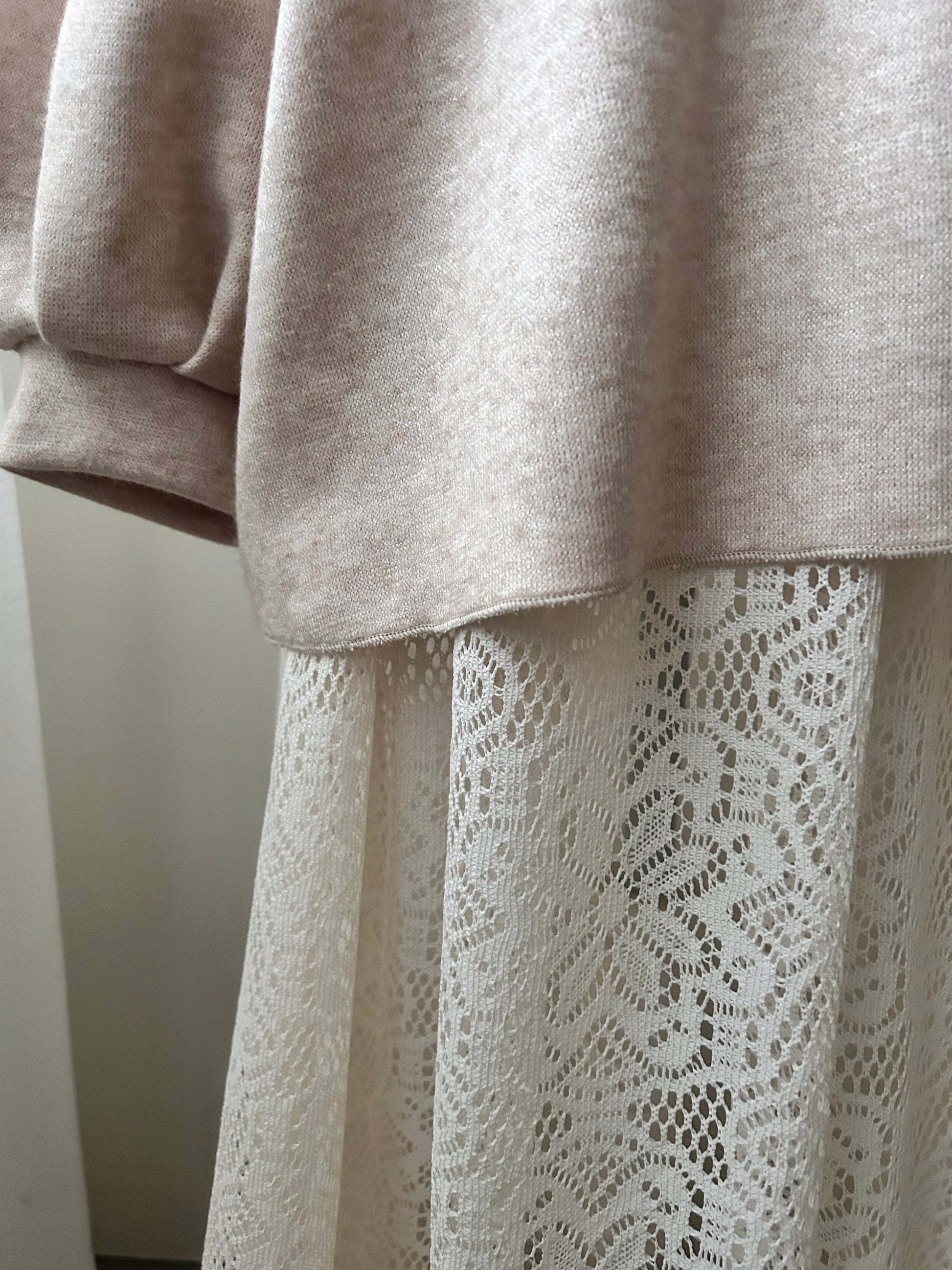 Maxi pull misto lana maniche lunghe e gonna in pizzo,lunga con spacco laterale
